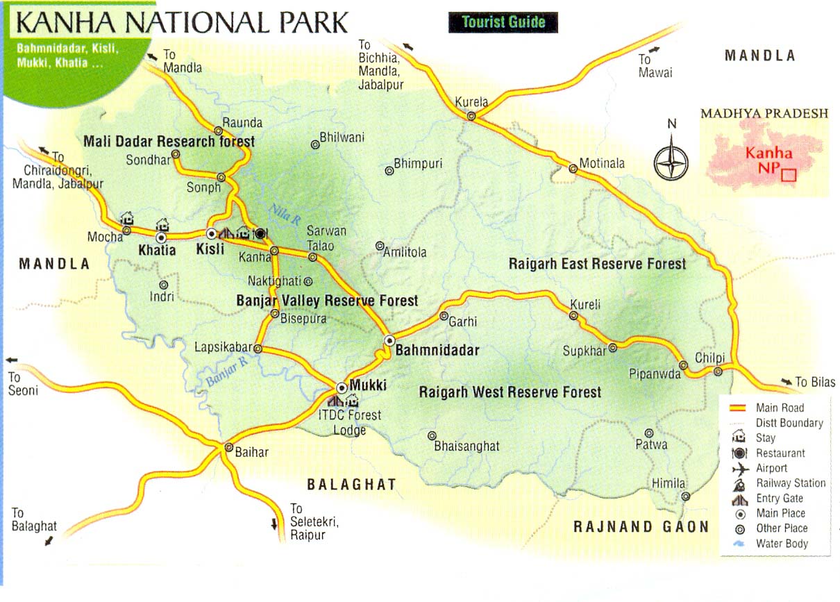 Zones Kanha national parks tourism area is divided into 4 zones - Kanha, Kisli, Sarai and Mukki with Kanha zone being the premium zone. Although all the zones are equally good as far as bio dicersity is concerned but tigers in Kanha and Kisli zones are more accustomed to Gypsy and human traffic and so much easily sighted. To check Tourism maps of Kanha National Park.